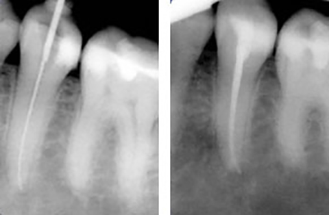 Ist der Zahnnerv durch Karies oder seltener, durch einen Unfall so geschädigt, dass er entfernt werden muss, wird eine Wurzelbehandlung notwendig. Dabei wird der Nerv entfert, der Zahn bzw. die Zahnwurzel gereinigt und desinfiziert und danach mit einem oder mehreren Kunstharzstiften gefüllt. Er bekommt eine Wurzelfüllung.